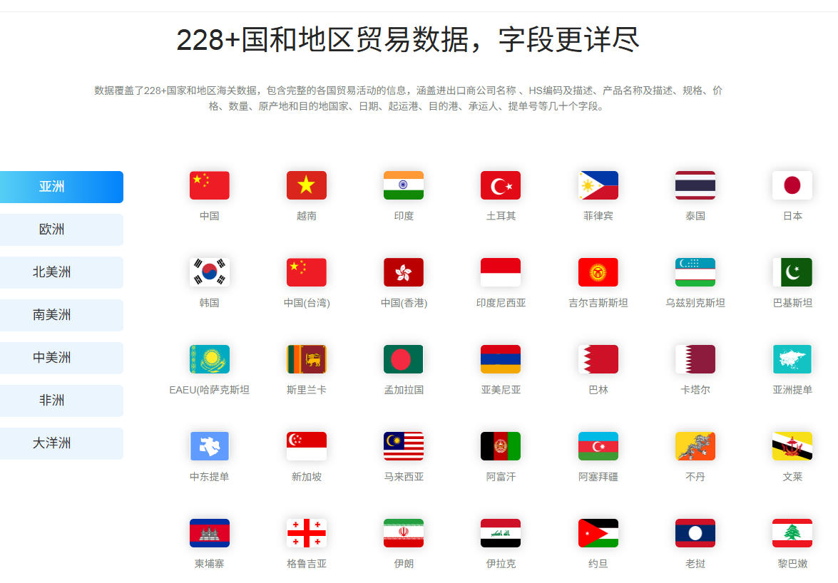 首先,数据权威、全面、更新快。平台汇聚了全球100多个国家的海关进出口数据,涵盖超过10亿条贸易记录,数据更新频率高,确保用户获取的信息是最新的。